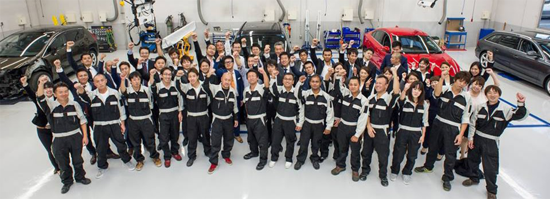Multiple showrooms across Japan including Tokyo, Suginami, Kobe, and Chiba, plus the Auto Technical Base (ATB) — one of Japan's largest private vehicle maintenance centres.